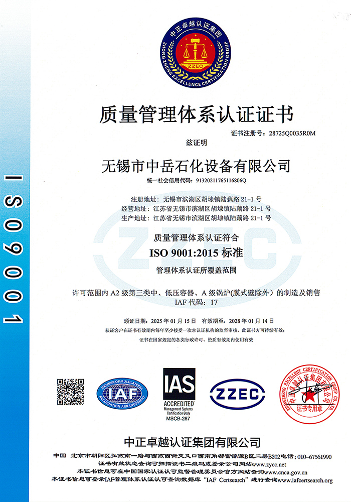 中岳石化下設四個控股子公司——無錫市中岳石化設備有限公司、無錫華凱環境工程有限公司、山西中岳實業有限公司、武漢中岳節能技術有限公司??偛课挥诮洕l達的長江三角洲,風景秀麗的太湖之濱——無錫市胡埭工業園區。是專業生產石油、化工、醫藥、染料、冶金、環保、焦化等行業用成套設備的專業公司。公司銀行資信等級4A級,公司注冊資金:3080萬,并獲得江蘇省高新技術企業、無錫換熱技術工程裝備中心證書,同時也是國內外主要工程公司設計院的合格供應商。